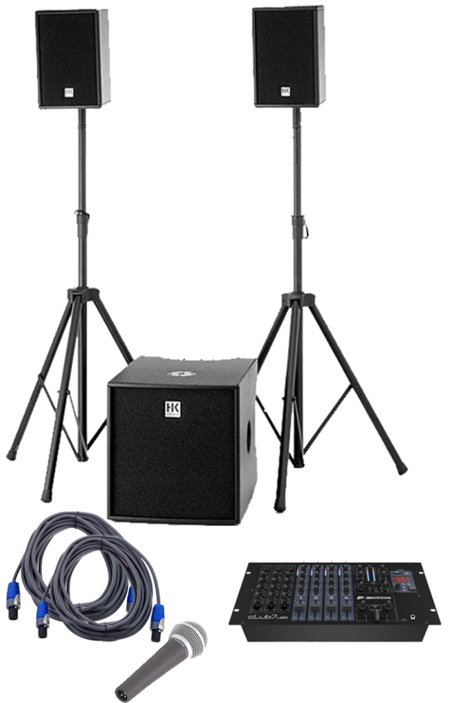 - Sobald Du den perfekten Platz für Dein DJ-Set gefunden hast, kannst Du mit dem Aufbau beginnen. Auf einem Standardtisch kannst Du Mischpult, Laptop und Mikrofon platzieren. Unter dem Tisch ist nun Platz für die Bassbox. Damit hast Du kurze Wege vom Mischpult zur Bassbox und vermeidest Stolperfallen. Da Bass für das menschliche Ohr nicht ortbar ist, brauchst Du Dir hier auch keine Gedanken über die genaue Platzierung der Bassbox zu machen.